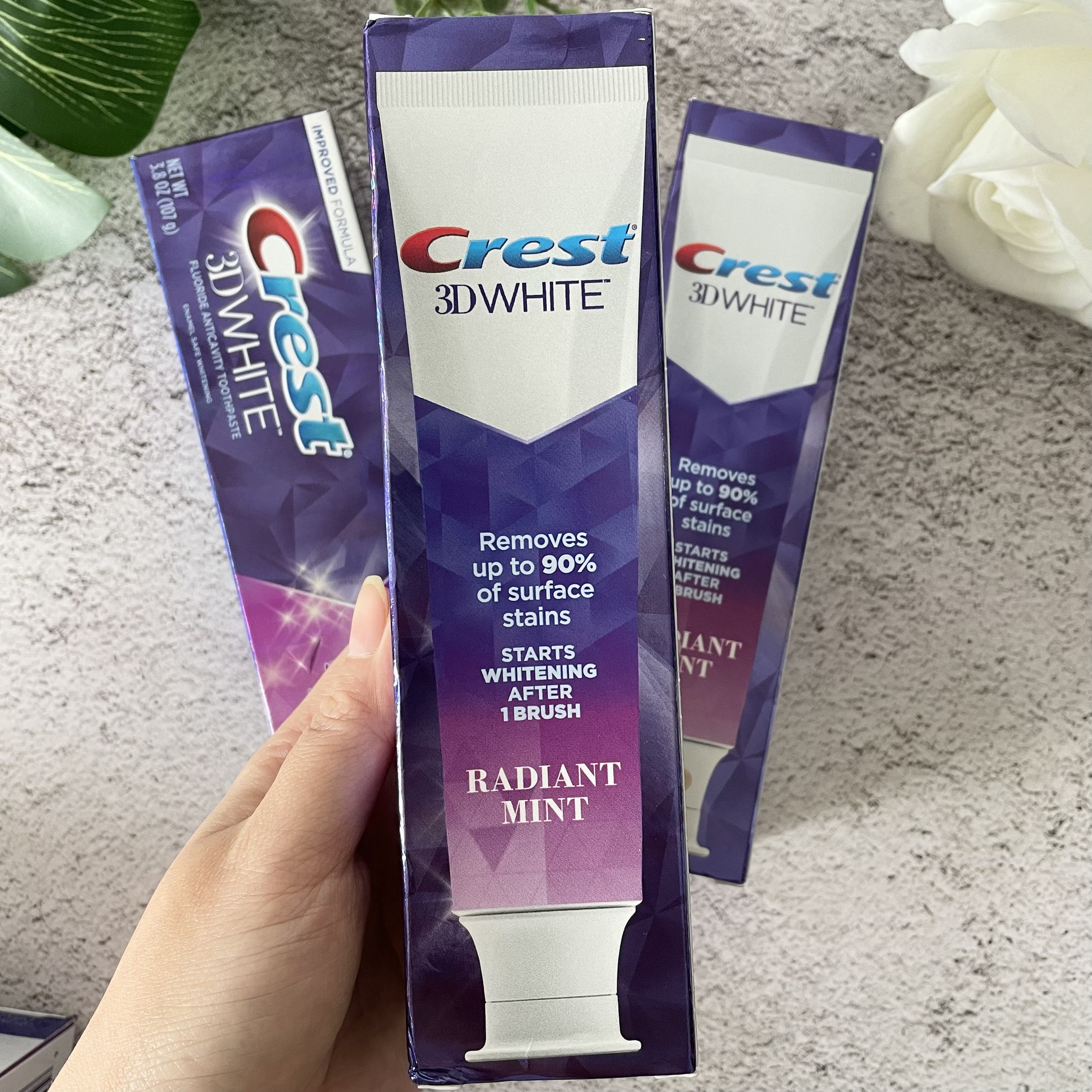– Kem đánh răng Crest 3D White Radian Mint có hương vị bạc hà mang lại cảm giác thơm tho