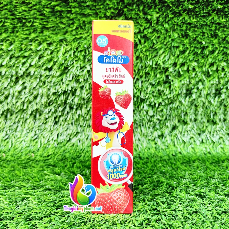 1- Thông tin chung về kem đánh răng Kodomo Là sản phẩm dành cho trẻ em với tác dụng bổ sung Fluoride hỗ trợ ngăn ngừa sâu răng, viêm nướu, bảo vệ sức khỏe răng miệng tối đa. * Thành phần kem đánh răng Kodomo : Gum, Xylitol, Titanium Dioxide, Proylen, Glycol, SLS, Flavour, Buthyl Paraben, Sacharin Natrium Waterx, Sodium Fluoride. + Fluoride có nồng độ vừa đủ giúp răng bé chắc khỏe hơn, chống chọi lại sự tấn công của vi khuẩn gây sâu răng sữa, ngăn ngừa mảng bám cao răng. + Xylitol là thành phần được chiết xuất từ vị ngọt của trái cây thiên nhiên tạo sự thích thú cho bé khi chải răng mỗi ngày. * Kem đánh răng Kodomo có mấy loại: Đây là sản phẩm kem đánh răng nổi tiếng của thương hiệu Lion xuất xứ từ Nhật Bản. Tập đoàn Lion ra đời từ năm 1891, chuyên về các sản phẩm chă sóc cá nhân và vệ sinh gia đình như: sản phẩm chăm sóc răng miệng, xà bông, dược phẩm, nước tẩy rửa,… Chính vì thế bạn hoàn toàn yên tâm khi sử dụng kem đánh răng của thương hiệu nổi tiếng này. Hiện nay còn có cả kem đánh răng Kodomo của Thái Lan, Indonesia. Kem đánh răng trẻ em Kodomo có 4 hương vị trái cây chính là: nho, dưa gang, dâu, cam.