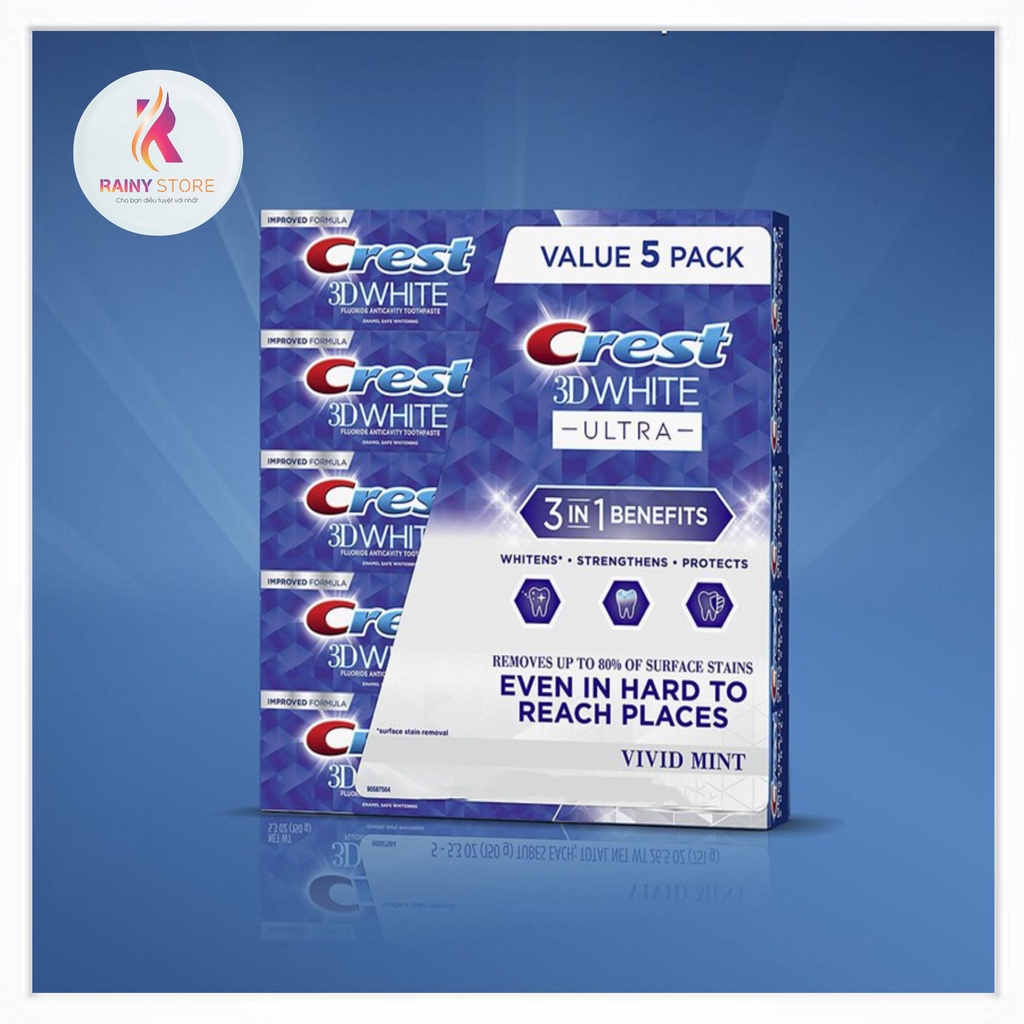 Giới thiệu Kem đánh răng trắng sáng Crest 3D White Ultra 3 in 1 Benefits Vivid Mint 158g chính hãng của Mỹ