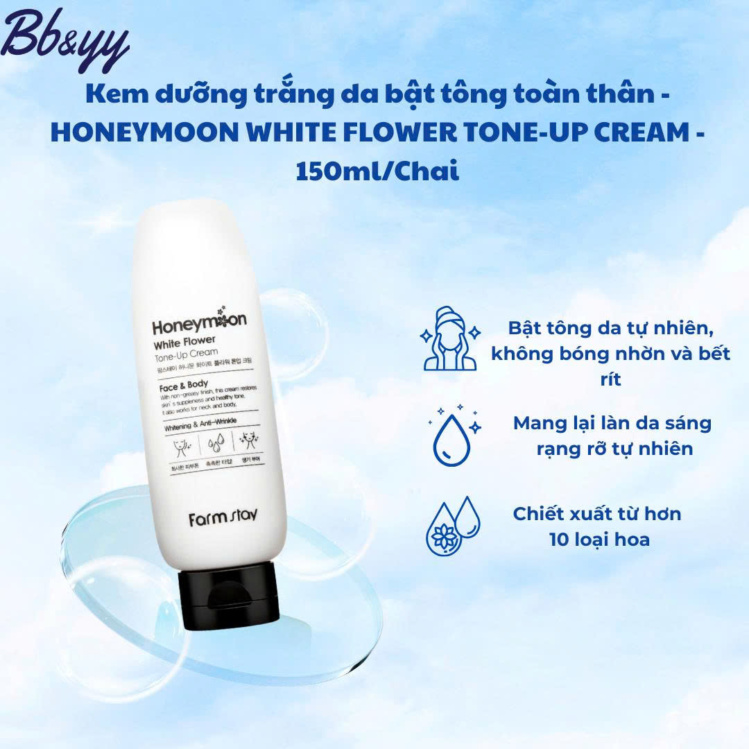 KEM DƯỠNG BẬT TONE DA MẶT & TOÀN THÂN _ FARMSTAY HONEYMOON WHITE FLOWER TONE-UP CREAM