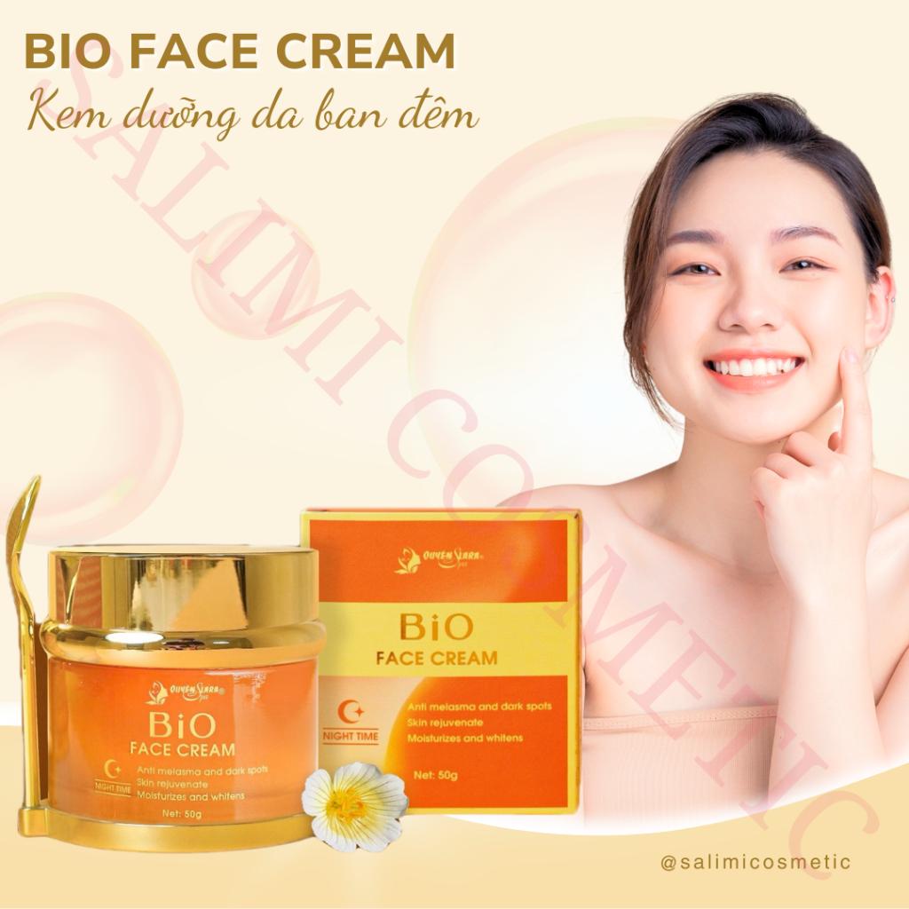 Bio Face Cream là kem dưỡng da ban đêm được bổ sung thêm thành phần cấp ẩm và phục hồi chuyên sâu, giúp da trắng sáng, mịn màng, căng bóng, mờ nám, tàn nhang, cải thiện cấu trúc da, giảm nếp nhăn.