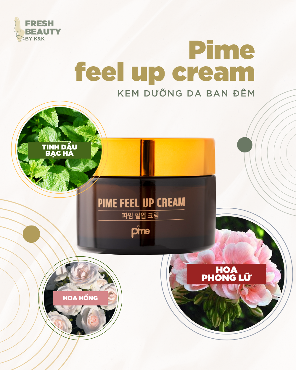 Sản phẩm nhập khẩu chính hãng từ Hàn Quốc và được Bộ Y Tế cấp phép lưu hành. Phân phối chính hãng bởi Fresh Beauty by K&K. Kem dưỡng ban đêm Pime Feel Up Cream giàu dưỡng chất không chỉ đóng vài trò cấp ẩm, khóa ẩm sâu mà còn mang lại cho người dùng một cảm giác tươi mới trên làn da, đúng như tên gọi “Feel up” nhờ các chức năng: