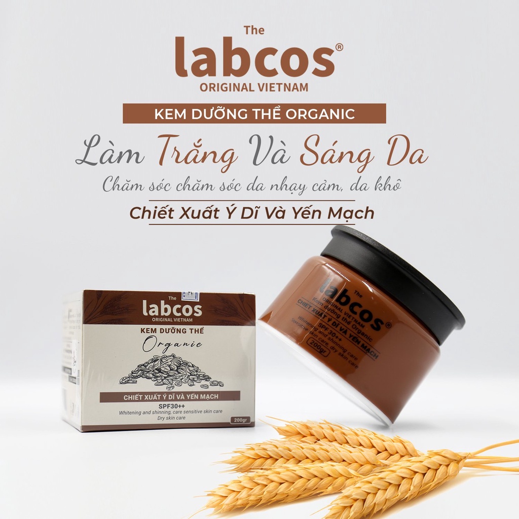 Labcos đã cho ra đời dòng kem dưỡng thể Organic. Chiết xuất từ Ý dĩ và Yến Mạch mang lại cho làn da những tác dụng cực kỳ tốt như: giảm thiểu sự hình thành nếp nhăn, da luôn mịn màn, ức chế sự hình thành tàn nhang, đồi mồi.
