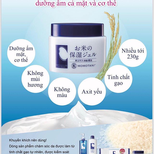 Với dòng dưỡng da mặt và vùng da body Gel Dưỡng Ẩm Sáng Da Momotani White Moisture Gel Cream 230gr sẽ phục hồi làn da bạn căng mướt, ẩm mịn và trắng sáng chỉ trong thời gian ngắn.