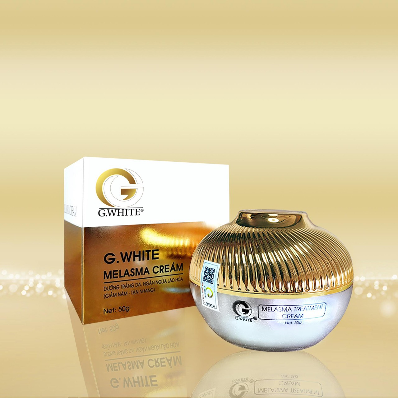G-WHITE MELASMA CREAM có khả năng thấm sâu vào lớp hạ bì của da, tác động tới gốc nám giúp giảm các vết thâm nám, tàn nhang, đồi mồi, các vết sạm đen mà không gây bào mòn da, đồng thời ức chế quá trình tổng hợp Melamin, cung cấp lượng lớn Collagen thuỷ phân, giúp tái tạo và phục hồi làn da triệt để, hỗ trợ sửa chữa các tổn thương do quá trình sử dụng mỹ phẩm độc hại hay tác động của môi trường, thời gian. G-WHITE MELAS MA CREAM cũng rất hữu hiệu trong việc hỗ trợ phục hồi tế bào da hư tổn, tái tạo bề mặt, nuôi dưỡng da khoẻ mạnh hơn , kích thích sản sinh tế bào da mới, làm trắng da, chống lão hoá và cung cấp độ ấm cho da mềm mượt, mịn màng hơn.