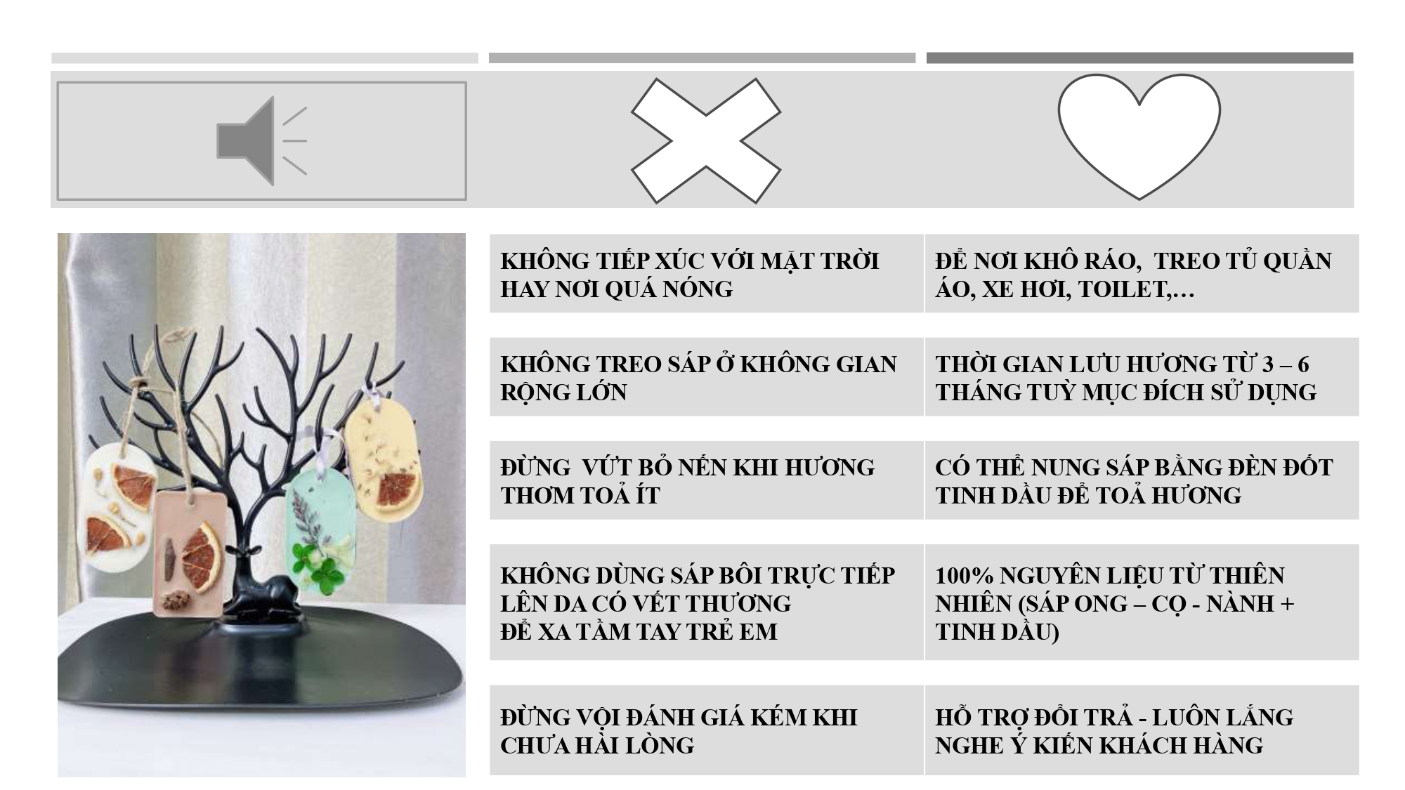 • Bạn muốn thơm không gian lớn, kín thì treo nhiều sáp hơn hoặc có thể sử dụng nến thơm