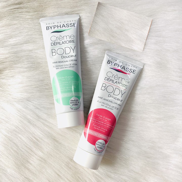 ➖ Kem tẩy lông byphasse chiết xuất từ Tơ Tằm ( màu đỏ) dành cho da thường ➖ Kem tẩy lông byphasse chiết xuất từ Lô Hội ( màu xanh) dành cho da nhạy cảm