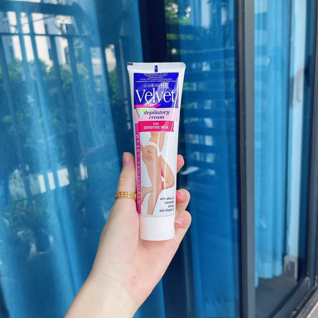 KEM T ẨY L ÔNG VELVET Xuất xứ: Nga 1. Thành phần Tinh đầu olive, cây cúc trắng và vitamin E. Tinh dầu olive và vitamin E trong thành phần kem t ẩy lông có tác dụng chống viêm, làm mềm da và khiến cho làn da trở nên mềm mại và mịn màng. 2. Công dụng - Kem t.ẩy l.ông velvet đặc biệt dành cho phụ nữ có làn da nhạy cảm và yếu ớt và dễ bị dị ứng - Tác động đến việc rụn.g lô.ng ở trên da có thể gây ra kích thích, đặc biết là đối với da nh.ạy cảm. Nhưng với kem tẩ.y lô.ng Velvet thì nhờ vào các công thức tiên tiến và kết cấu tinh tế cho phép lấy đi vùng lô.ng không mong muốn 1 cách an toàn hơn. - Nhờ vào tác dụng làm dịu da của cây cúc trắng, kem tẩy da velvet sẽ chăm sóc cho làn da trong khi tẩ.y lô.ng.