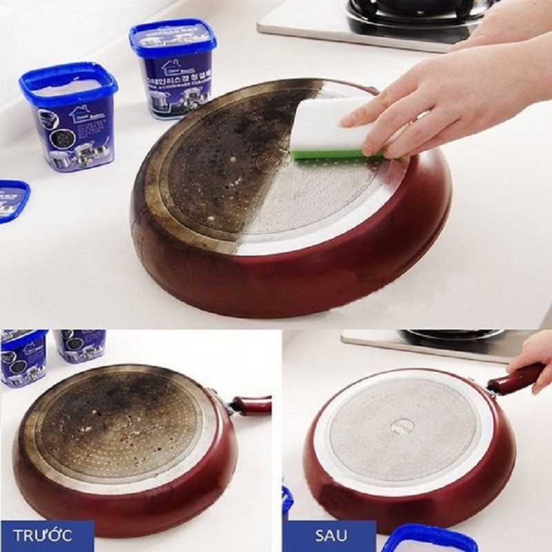 Kem tẩy xoong nồi đa năng Hàn Quốc Khách xem video để biết độ thần thánh của em nó nhé. Tẩy sạch mọi vết ố trên bếp, xoong nồi… Trắng sạch như mới luôn ạ Thông tin sản phẩm: – Tên sản phẩm: Kem tẩy xoong nồi đa năng Hàn Quốc – Trọng lượng: 500g – Xuất xứ:Công Nghệ Hàn Quốc – Kích thước: 8,5 x 6,5 x 5,5 cm Công dụng: Kem tẩy xoong nồi -Kem tẩy xoong nồi Tẩy sạch các loại vết bẩn nằm trên bề mặt các dụng cụ nhà bếp, vật dụng sinh hoạt thường ngày. Các vết bẩn nằm trong ngóc ngách khó nhìn thấy vẫn có thể tẩy sạch được. Có thể tẩy sạch đến 99,9% các loại vi khuẩn nguy hiểm như trực khuẩn Samonela, vi khuẩn .Dễ dàng tẩy rửa được nhiều vật dụng với nhiều chất liệu khác nhau: đồ gốm, thủy tinh, kim loại, nhựa và máy giặt mà không cần phải cọ, chùi nhiều. Lưu ý trước khi sử dụng kem tẩy: – Cần đậy nắp hộp thật kín sau mỗi lần dùng để tránh các thành phần trong chất tẩy bị đông đặc hoặc bốc hơi. – Các sản phẩm này tẩy rửa hiệu quả hơn khi đồ vật ở nhiệt độ cao, nên đối với các vết cháy đen dính chặt vào vật dụng, dùng nước nóng chế qua tạo nhiệt, sau đó dùng chất tẩy rửa để tẩy. – Khi tẩy rửa các loại vật dụng mới, vật dụng không gỉ, thủy tinh, gốm,… cần dùng đồ chà nồi ướt. – Đối với các vật dụng có phủ một lớp bóng, các vật dụng bằng đồng, các vật dụng hữu cơ, khung bánh xe đạp, dùng vải khô để lau với chất tẩy. – Đối với các dụng cụ có lớp phủ bên ngoài, có lớp tráng bóng, cần phải thử một điểm nhỏ trên dụng cụ trước khi chà rửa toàn bộ với chất tẩy.