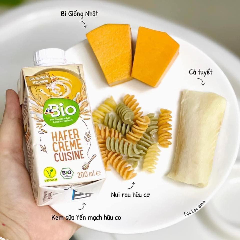 Kem tươi yến mạch hữu cơ DmBio 200ml - phù hợp cho bé từ 6 tháng tuổi --- * Xuất xứ: Đức * Hàng hữu cơ, là nguyên liệu thay thế phù hợp cho bé không dùng được sữa từ đạm bò * Dòng sản phẩm này có hạn sử dụng khá ngắn nên mẹ cứ yên tâm sử dụng nếu còn trong hsd nhé. * Sản phẩm không chứa đường -- * Dung tích: 200ml * Kem tươi yến mạch hữu cơ Hafer Creme Cuisine của DmBio vừa ngầy ngậy, thơm béo lại có thành phần yến mạch tốt cho tim, hỗ trợ hệ tiêu hoá, giúp ngăn ngừa thiếu máu ở trẻ nhỏ. * Sản phẩm hữu cơ của Đức luôn chuẩn và ngon các mẹ dùng thử cho bé nhé * Nấu soup/cháo chín rùi cho kem Hafer vào khuấy đều rùi tắt bếp liền ăn không bị mất chất mà thơm béo lắm ạ. * Thay thế sữa tươi hoặc sữa nguyên kem trong các món ăn như súp, cháo, xào, tráng miệng của bé đều phù hợp. --- * Bảo quản ngăn mát tủ lạnh sau khi mở nắp --- #bobastore #andamantoan #kemtuoiyenmach