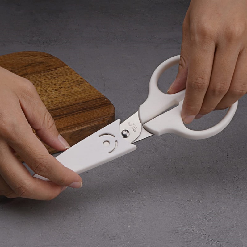 Chất liệu | Phần lưỡi kéo bằng thép cao cấp không gỉ sắc bén & trơn ngọt ○ Tay cầm & nắp đậy bằng nhựa ABS chịu lực, chịu nhiệt tốt lên tới 80℃ |