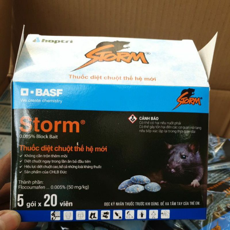 Hiện nay, thuốc diệt chuột Storm là sản phẩm bán chạy nhất trên thị trường do tác dụng diệt chuột đạt trên 90%. Thuốc diệt chuột Storm được sản xuất theo công nghệ hóa sinh, cách sử dụng dễ dàng, an toàn và giá cả phải chăng. Thuốc có màu xanh, dạng viên, hay còn gọi là "viên kẹo"