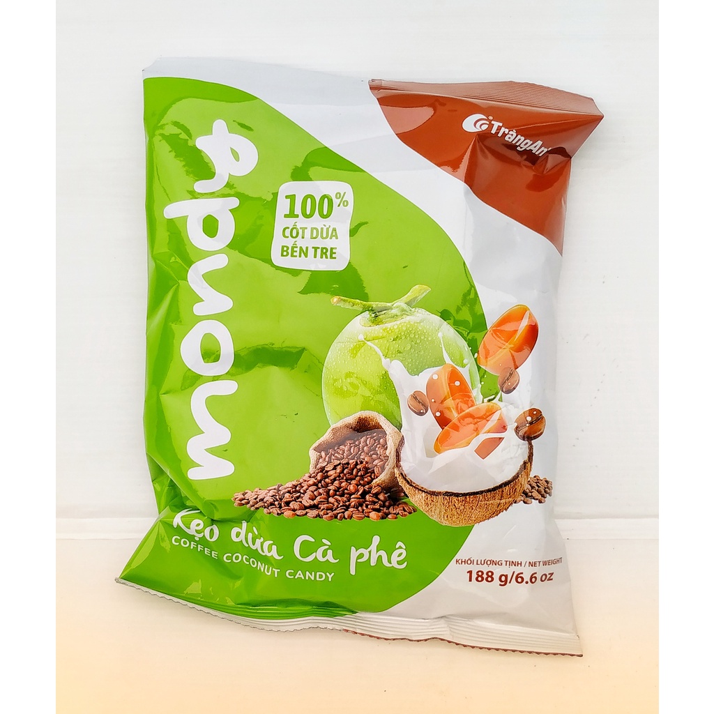 Thực phẩm và đồ uống > Đồ ăn vặt > Kẹo || Kẹo dừa cà phê Mondy Tràng An 100%cốt dừa Bến Tre gói to 188g