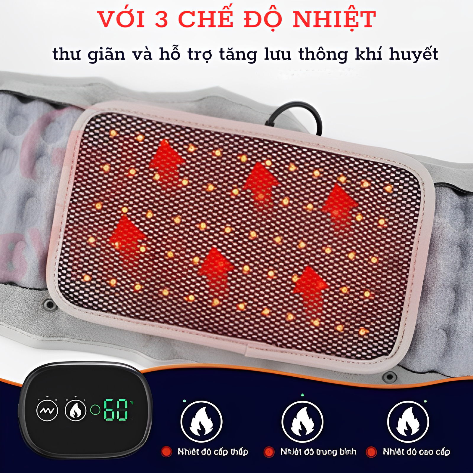 ✤ Chế độ nhiệt hỗ trợ làm giảm đau nhức: Chế độ nhiệt giúp làm giảm đau nhức nhanh chóng, vừa giúp thư giãn vừa hỗ trợ tăng lưu thông khí huyết. Đai hơi côt sống Z5 có 3 mức nhiệt độ khoảng 40 - 50 - 65 độ C. Với thiết kế siêu mới và tiện lợi, bạn có thể theo dõi nhiệt độ ngay trên bảng điều khiển của đai. Nhờ đó, bạn sẽ biết nhiệt độ đang ở mức bao nhiêu và điều chỉnh cho phù hợp. Mặt sau của đai được bố trí 60 đèn hồng ngoại giúp sưởi ấm cả vùng thắt lưng làm tăng hiệu quả quá trình sử dụng đai
