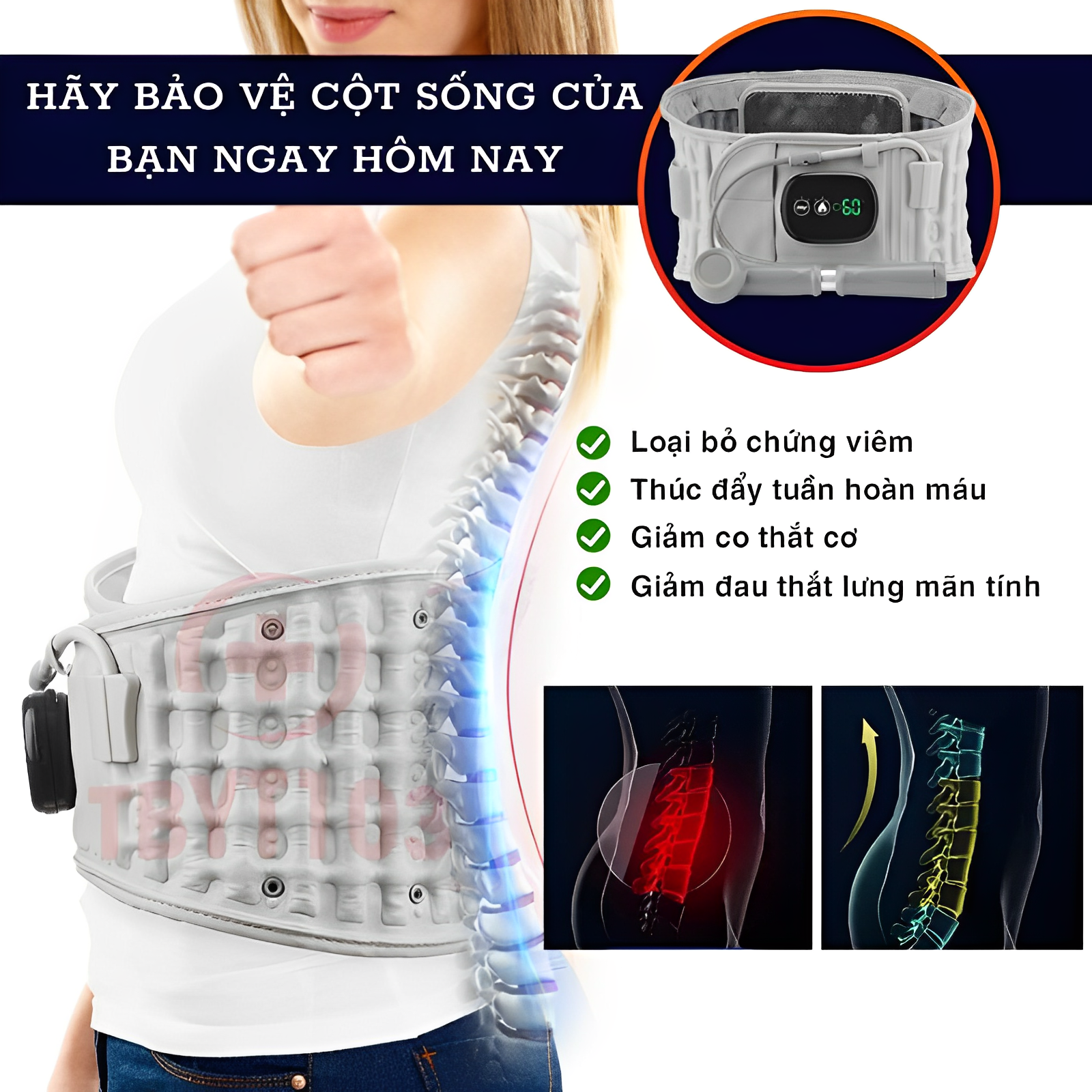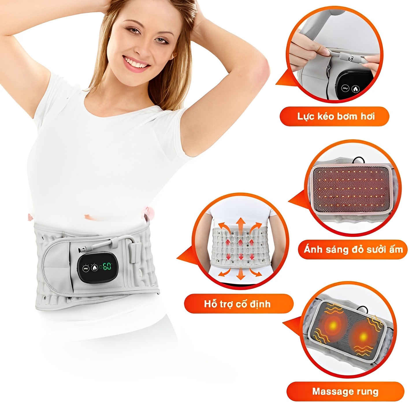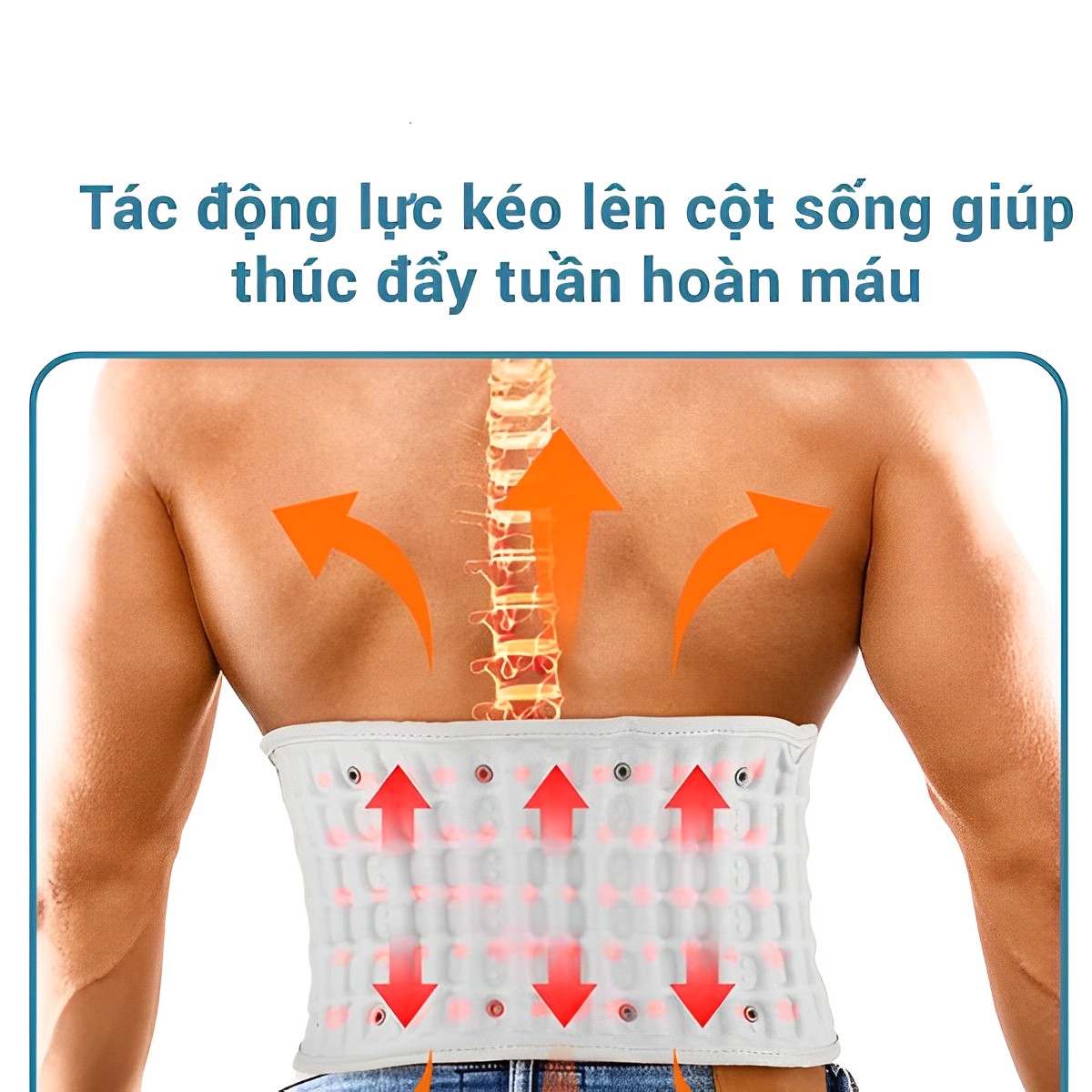 ✤ Kéo dãn vùng thắt lưng, cột sống: Đai hơi Z5 sau khi được bơm căng sẽ lực kéo 360 độ giúp làm giảm áp lực lên các đốt sống, đĩa đệm, hỗ trợ làm giảm tình trạng bị chèn ép, khí huyết được lưu thông tuần hoàn tốt hơn từ đó làm giảm đau nhức nhanh chóng.