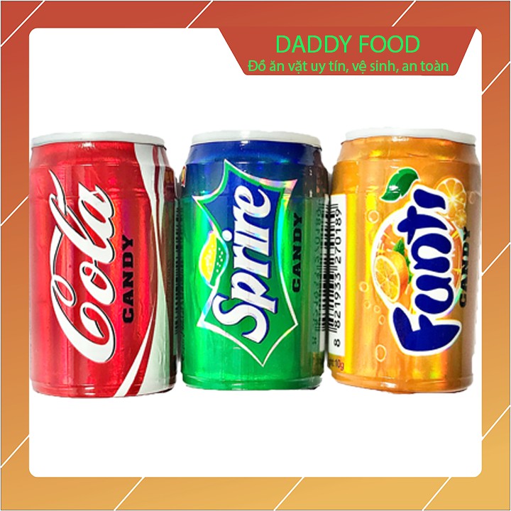 Giới thiệu Kẹo hình lon nước ngọt fanta, sprire, coca vỉ 30 lon