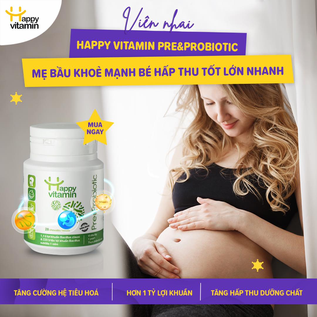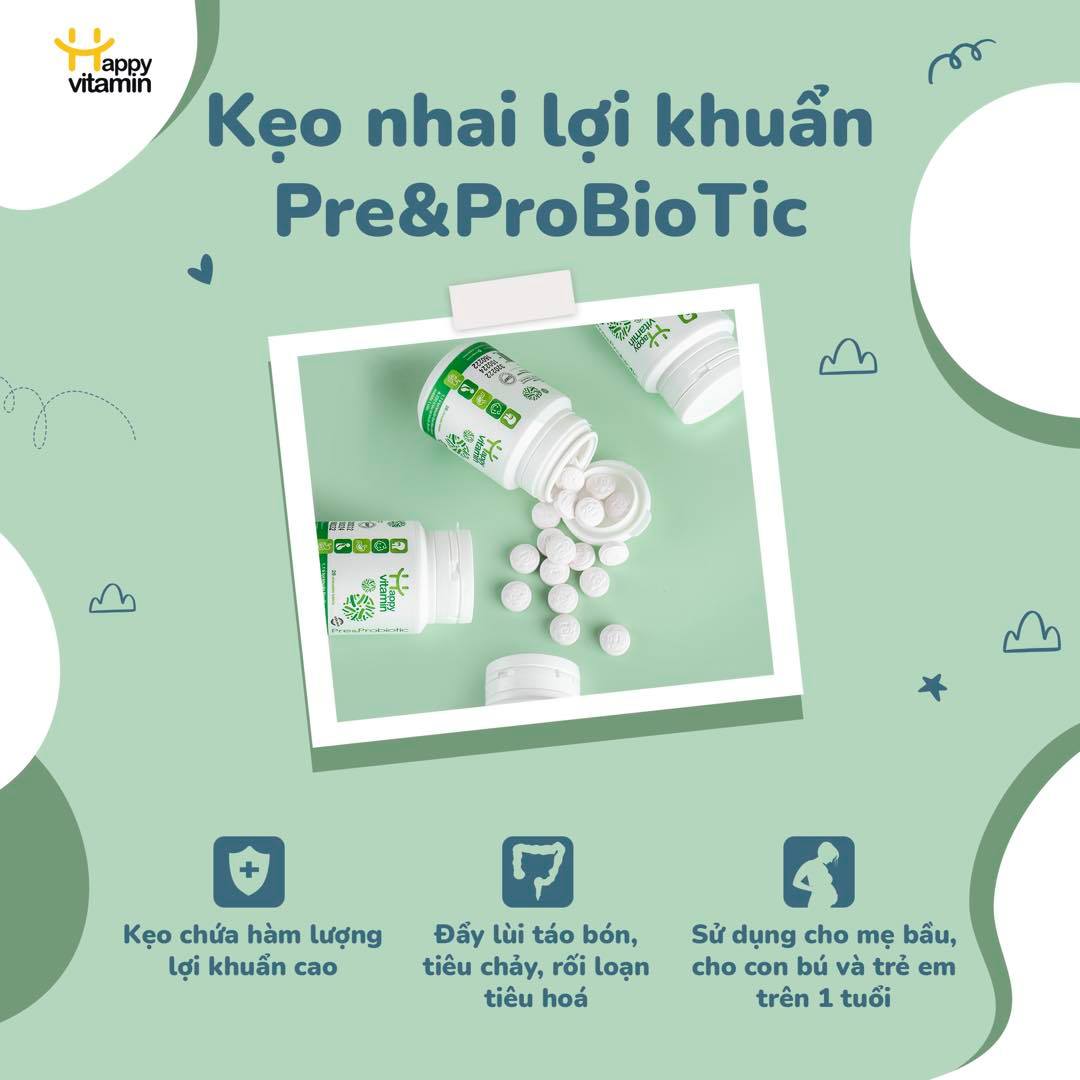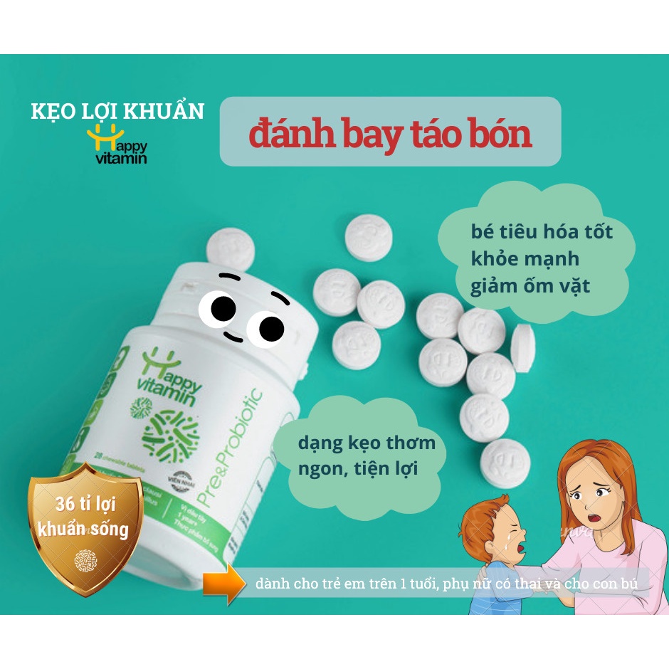 Kẹo Lợi Khuẩn Happy Vitamin Pre&Probiotic Dành Cho Trẻ Và Mẹ Bầu - Lọ 28 Viên