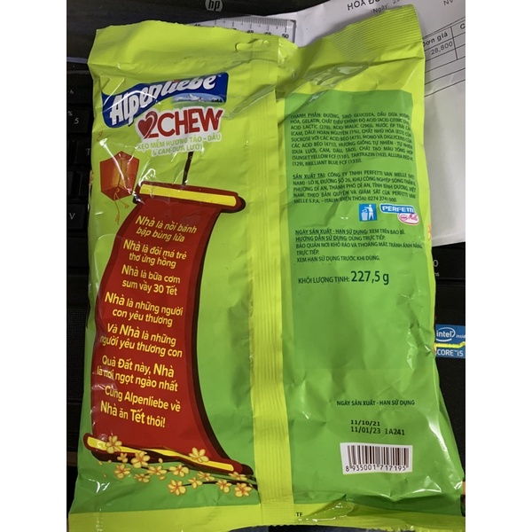Kẹo mềm Alpenliebe hương táo và cam được sản xuất bởi công ty Perfectti Van Melle Việt Nam