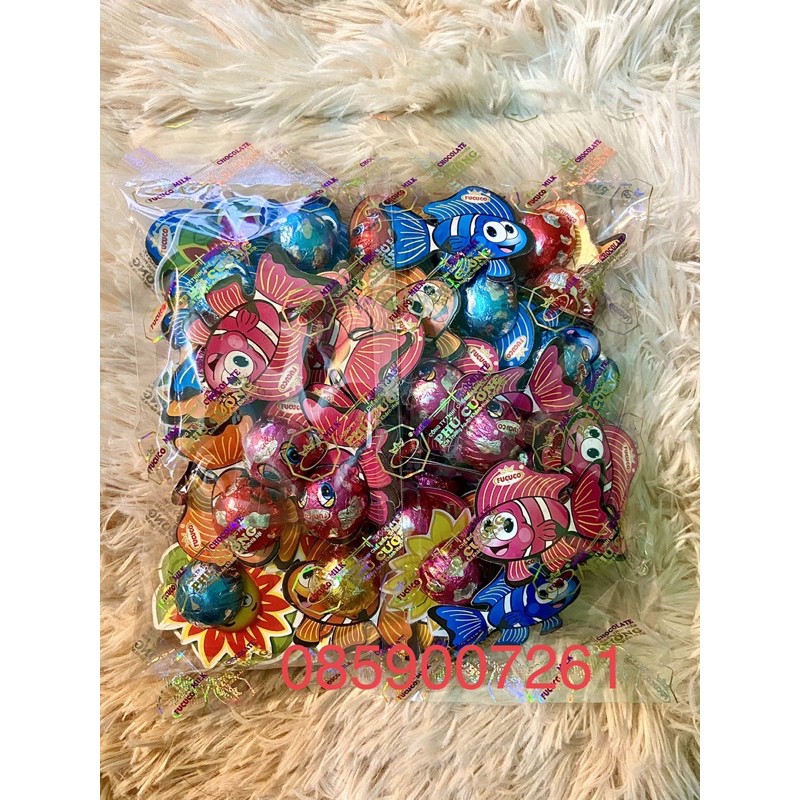 Thực phẩm và đồ uống > Đồ ăn vặt > Sô cô la || KẸO SOCOLA HÌNH CON CÁ / CON ONG DORY FUCOCO GÓI 350G