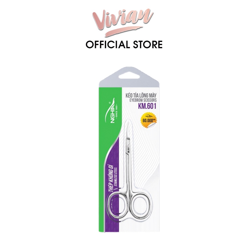 Kéo tỉa mày KM-601(KE0088) Đặc điểm nổi bật Chất liệu Thép không gỉ (Inox), an toàn cho người dùng. Thiết kế Tay cầm có thiết kế phù hợp với kích thước tay của người Châu Á. Kéo được thiết kế mũi kéo cong, nhọn, lưỡi kéo sắc mỏng, tinh xảo, độ chính xác cao. Sản phẩm được sản xuất theo chuẩn ISO 9001 - 2015 . Trọng lượng 25 gr Kích thước 96 (+/-1) x 49 (+/-1) x 3,2 (+/-0,5) mm Thương hiệu Kềm Nghĩa được người tiêu dùng và thợ chuyên nghiệp ưu tiên lựa chọn hơn 20 năm, đạt được nhiều giải thưởng như: Hàng Việt Nam chất lượng cao, Thương hiệu quốc gia. Mô tả: Ra đời từ những năm 1980, Kềm Nghĩa từ lâu đã trở thành thương hiệu mà người tiêu dùng tin tưởng sử dụng. Các sản phẩm của Kềm Nghĩa tương đối thông dụng, được chế tác từ các nguyên liệu cao cấp, khác hẳn các sản phẩm khác trên thị trường, sản phẩm KM.601 là dòng kéo cá nhân với thiết kế nhỏ- gọn- nhẹ, mũi kéo mảnh dễ dàng cắt tỉa và định hình đường lông mày. Sản phẩm KM.601 được tạo nên từ chất liệu thép không gỉ. Với công nghệ xi mạ an toàn không hại da tay, luôn là sản phẩm khách hàng tin dùng. Bao bì hộp nhựa giúp bảo quản tốt sản phẩm và phù hợp làm quà tặng, tiện lợi khi mang theo bên người. Chế độ bảo hành: Nếu sản phẩm bị lỗi kỹ thuật, quý khách có thể đổi lại tại Showroom của Công ty. Lưu ý sử dụng: Công dụng sản phẩm: Kéo dùng để cắt tỉa và định hình đường lông mày. Không dùng để cắt các vật cứng. Cách bảo quản sản phẩm : - Giữ kéo ở nơi khô thoáng. - Sau khi sử dụng lau kéo bằng khăn mềm hoặc khăn lau kéo chuyên dụng. - Dùng lượng cồn vừa đủ để vệ sinh sản phẩm, chú ý KHÔNG thả kéo trực tiếp vào cồn. - Tránh va chạm vào lưỡi kéo hoặc để kéo rơi xuống đất. - Tránh xa tầm tay trẻ em. Sản phẩm của Công ty Cổ Phần Kềm Nghĩa Sài Gòn Địa chỉ: 700/15 Lạc Long Quân, Phường 9, Quận Tân Bình, TP. Hồ Chí Minh