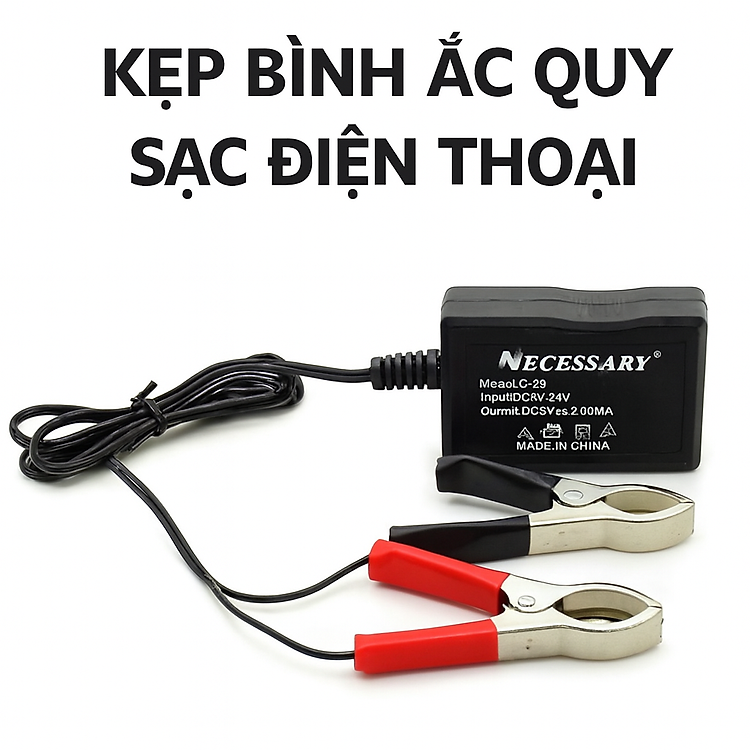 Bộ Kẹp Bình Ắc Quy 12V-24V Sạc Điện Thoại chính là giải pháp siêu tiện lợi – biến bình ắc quy thành nguồn sạc USB an toàn, mạnh mẽ, dùng được cho nhiều thiết bị cùng lúc.