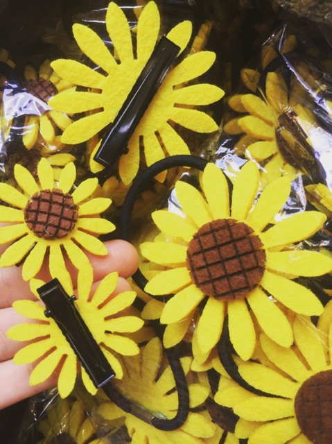 Kẹp/buộc tóc hoa hướng dương da lộn cực xinh.