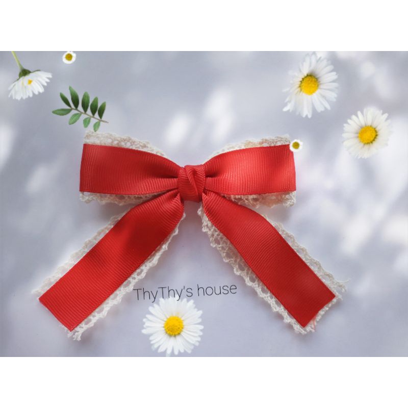 Giới thiệu Kẹp/Cột tóc nơ ren caro vintage