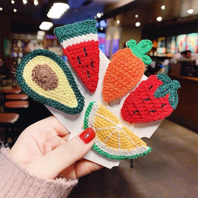 Kẹp mái len móc hình trái cây kute dành cho nữ