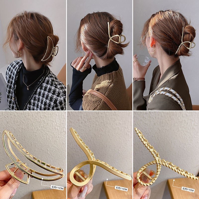 Giới thiệu Kẹp tóc kim loại cỡ lớn kẹp tóc kim loại đính hạt ngọc trai nhân tạo kiểu Hàn Quốc thanh lịch
