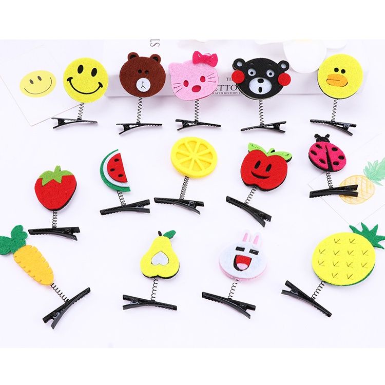 THÔNG TIN SẢN PHẨM ⭐ Tên sản phẩm: Kẹp tóc lò xo trái cây, động vật xinh xắn ⭐ Kích thước: 4- 5 cm ⭐ Chất liệu: Kim loại ⭐ Màu sắc: Giao ngẫu nhiên