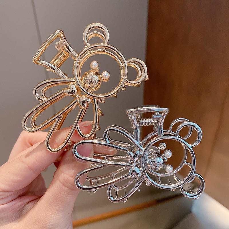 Kẹp tóc nữ kim loại hợp kim sang chảnh hình gấu Hàn quốc siêu xinh màu vàng và bạc