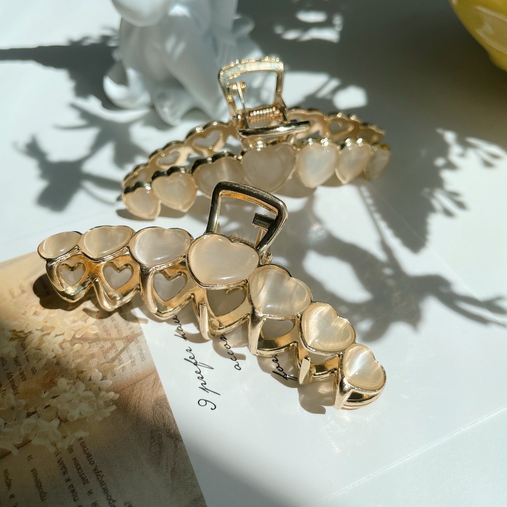 귀여운 하트 디자인의 핀이예요🤍 중간 size 으로 반묶음 할때 제일 예쁜 핀이랍니다. 긴머리의 반묶음 또는 단발머리에 반묶음으로 핀 활용가능합니다. 햇빛을 받으면 더 예쁘게 반짝 거려요.