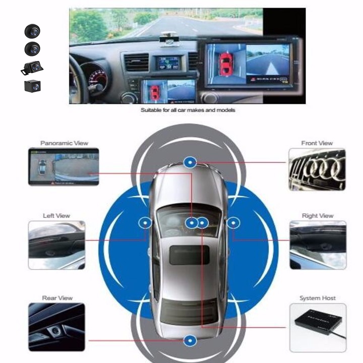 * Tính năng nổi bật của camera 360 độ chuẩn AHD: ✔ Loại bỏ hoàn toàn các góc khuất, điểm mù và ghi hình toàn cảnh 360 độ quanh xe. ✔ Kết nối trực tiếp với màn hình DVD trong xe mang lại hình ảnh trực quan đa chiều xung quanh xe giúp lái xe quan sát dễ dàng. ✔ Tự động hiển thị hình ảnh trên màn hình theo tín hiệu của xe (tiến lùi,xi nhan trái-phải) ✔ Tự động đánh góc lái theo chiều xoay vô lăng: Giúp lái xe căn chỉnh chính xác những vị trí mà 2 bánh xe sẽ đi vào. ✔ Tích hợp camera hành trình: Ghi hình cả 4 mắt camera. ✔ Hỗ trợ thẻ nhớ dung lượng lớn lưu trữ thêm nhiều hành trình xe.