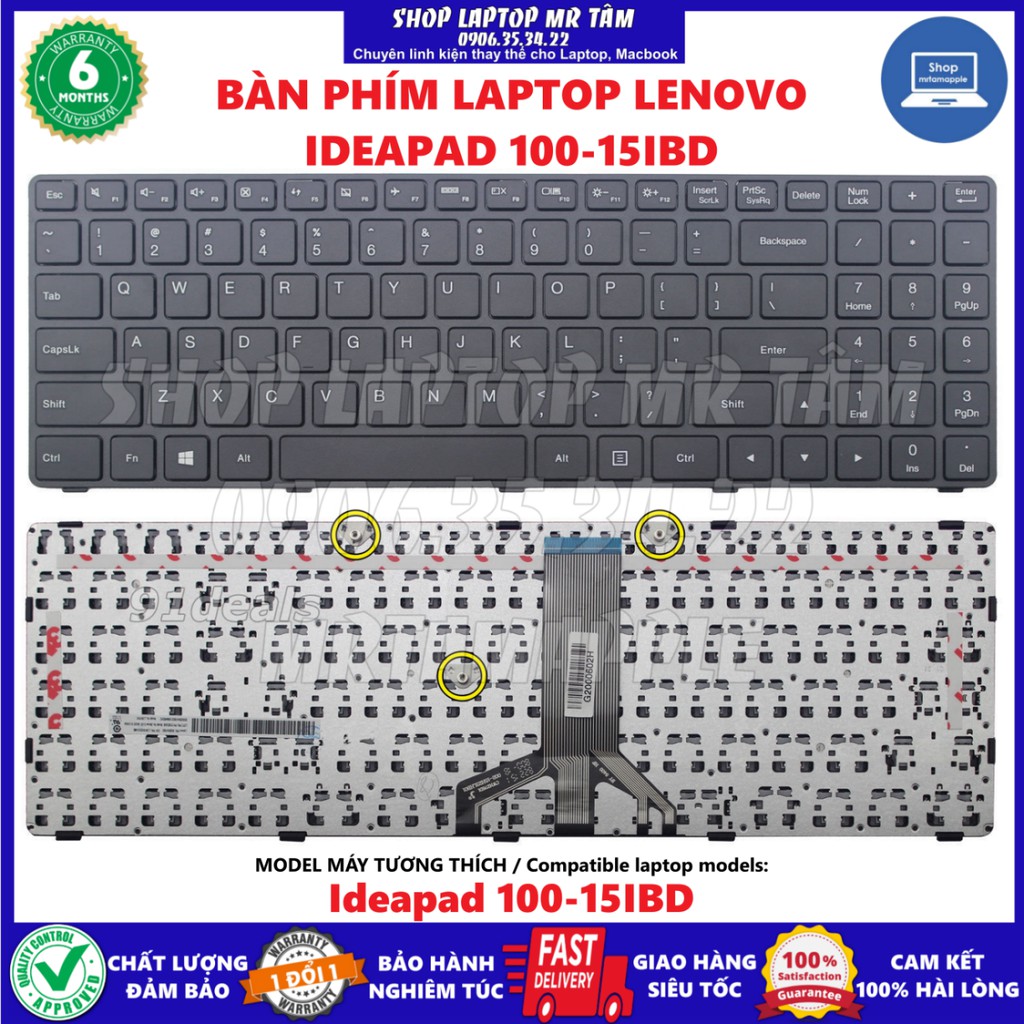 (KEYBOARD) BÀN PHÍM LAPTOP LENOVO IDEAPAD 100-15IBD tương thích dùng chung cho các model laptop sau / Fit for: Ideapad 100-15IBD ✔️========= Cảm ơn và Chào mừng Quý Khách đã ghé thăm gian hàng của ✔️Shop Laptop Mr Tâm✔️ (English language customers are fully supported) Shop chuyên kinh doanh linh kiện thay thế cho LAPTOP và MACBOOK. Chúc bạn tham quan và order vui vẻ. Shop Laptop Mr Tâm (mrtamapple) CAM KẾT: ✔️Bán sản phẩm đúng mô tả chất lượng. ✔️Luôn TEST SẢN PHẨM hoạt động tốt bằng board test chuyên dụng trước khi đóng gói. ✔️Đóng gói sản phẩm bằng hộp giấy carton cứng CHUẨN CHỐNG SỐC, CHỐNG NƯỚC có TEM SEAL NIÊM PHONG bên ngoài hộp để đảm bảo đúng và đủ hàng không bể vỡ. ✔️Giao hàng nhanh chóng đến đơn vị vận chuyển. ✔️Hỗ trợ giao hàng HỎA TỐC 4H (TP.HCM). ✔️Bảo hành sản phẩm (1 đổi mới 1) nghiêm túc, đổi trả nhanh gọn hậu bán hàng. ✔️Tư vấn khách chọn mua đúng hàng nhiệt tình, vui vẻ, thân thiện. ✔️Khách mua hàng online an toàn và hài lòng. KHUYẾN KHÍCH: ✔️Khách hàng QUAY LẠI VIDEO MỞ HỘP SẢN PHẨM để khiếu nại nếu có sự cố sản phẩm do quá trình vận chuyển. ✔️Giữ lại hộp đựng sản phẩm 07 đầu sau khi nhận hàng (mua nhầm, đổi trả...). ========= THÔNG TIN SẢN PHẨM: Loại bàn phím: BÀN PHÍM LINH KIỆN THAY THẾ Hình thức: BÀN PHÍM MỚI (chưa qua sử dụng). Tình trạng: Hoạt động tốt. (test kỹ trước khi đóng gói). Bảo hành: 06 tháng (1 đổi mới 1). ⚠️LƯU Ý: PHÂN LOẠI BÀN PHÍM LAPTOP SHOP ĐĂNG BÁN MẶC ĐỊNH NẾU TÊN SẢN PHẨM, PHÂN LOẠI SẢN PHẨM HOẶC MÔ TẢ SẢN PHẨM KHÔNG ĐỀ CẬP ĐẾN SẼ LÀ: ✔️BÀN PHÍM MÀU ĐEN. ✔️BÀN PHÍM KHÔNG CÓ ĐÈN LED. ✔️BÀN PHÍM KHÔNG BAO GỒM CÁP TRẮNG NHỎ (CÁP CỦA NÚM CHUỘT TRACKPOINT GIỮA BÀN PHÍM HOẶC CÁC LOẠI CÁP PHỤ KHÁC) CỦA MỘT SỐ DÒNG MÁY LAPTOP DELL, HP, LENOVO... ========= LƯU Ý TRƯỚC KHI ĐẶT MUA:⚠️⚠️⚠️ ✔️Hàng điện tử KHÔNG ĐỒNG KIỂM khi nhận hàng. Vui lòng kiểm tra thông tin chính xác (số phone, địa chỉ…) trước khi bấm mua hàng tránh phát sinh lỗi giao đơn hàng. QUÝ KHÁCH TÌM XEM VÀ SO SÁNH KỸ GIỮA BÀN PHÍM LAPTOP GỐC VÀ BÀN PHÍM CỦA SHOP BÁN THAY THẾ CÁC ĐẶC ĐIỂM SAU: ✔️HÌNH DÁNG NÚT ENTER (NÚT ENTER NẰM NGANG, HOẶC NÚT ENTER HÌNH SỐ 7) nếu là dòng BÀN PHÍM ÂM (loại phím phải lắp vào khung/vỏ máy có sẵn của laptop). ✔️CÁP PHÍM: độ rộng, chiều dài, vị trí. ✔️CHÂN ỐC: số lượng, vị trí. ✔️CHAT VỚI SHOP NẾU: + Bạn vẫn chưa chắc chắn đúng loại bàn phím (gửi cho shop hình ảnh bàn phím mặt trước mặt sau, hình model máy laptop, mã part number bàn phím ...) + Bạn cần thêm thông tin về sản phẩm muốn mua. + Bạn tìm sản phẩm cần mua trong Shop mà chưa thấy. ✔️GỌI NGAY: 0906.35.34.22 Mr Tâm✔️ nếu có sự cố về đơn hàng (giao nhận, bễ vỡ...), sản phẩm (lắp đặt, sử dụng...) đang khi hoặc sau khi nhận hàng để shop được hỗ trợ bạn nhanh và kịp thời.