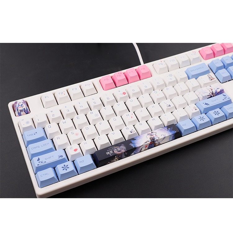 Giới thiệu [GIAO NHANH] Keycap genshin impact Ayaka 136 phím thick PBT in dyesub 5 mặt anime cherry profile vừa hết layout phím cơ