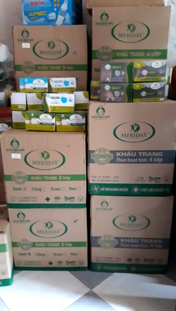 Sức Khỏe > Vật tư y tế > Bao tay và khẩu trang y tế || Khẩu trang MERIDAY 4 lớp màu xanh