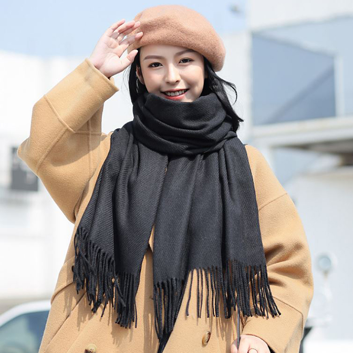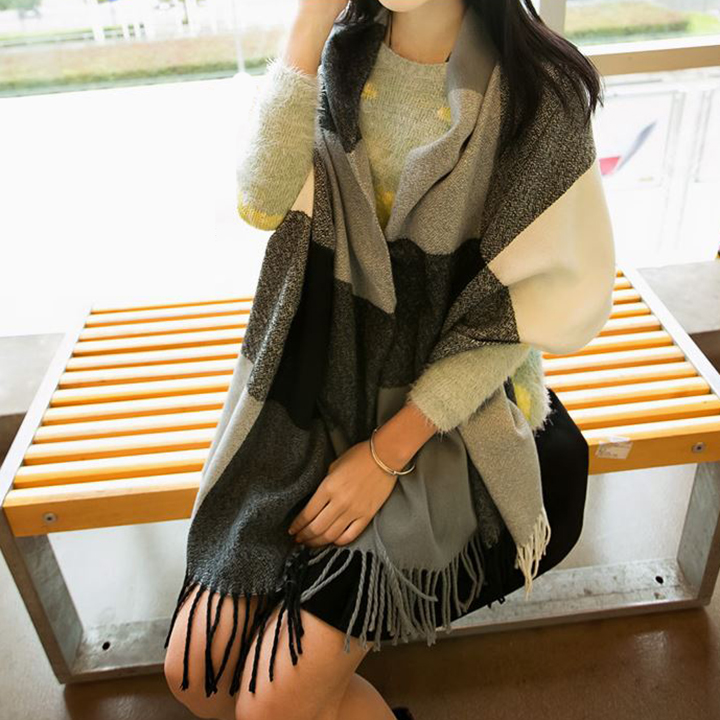 Với những chiếc khăn to bản, thậm chí dày như áo, bạn có thể choàng quanh người để tạo thành một layer phủ phía trên cho trang phục thêm ấm áp.