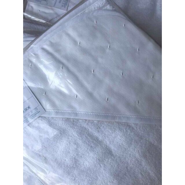 Có mũ, dùng để thấm hút nước, quấn bé ngay sau khi tắm. Màu trắng, chất mềm, thấm nước tốt, ko xù lông.