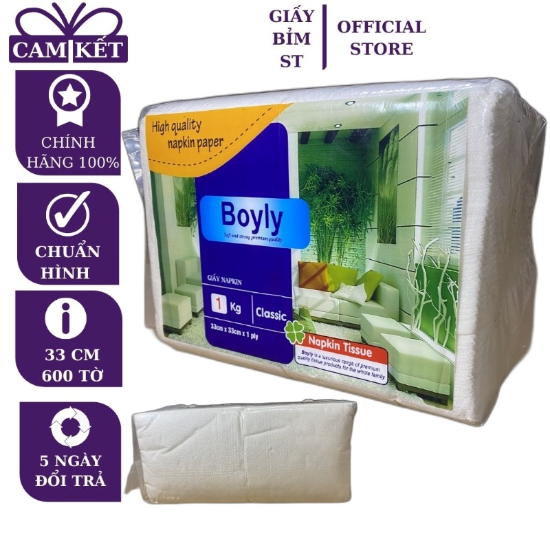 Giới thiệu Khăn giấy ăn vuông cân Boyly khổ to 1kg (khoảng 700 tờ 1 bịch)