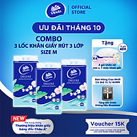 [MUA 3 LỐC KHĂN RÚT SIZE M TẶNG 1 LỐC SIZE S + 1 MÓC KHÓA] Khăn giấy rút cao cấp Vinda Deluxe 3 lớp 90 tờ size M (5 Gói)