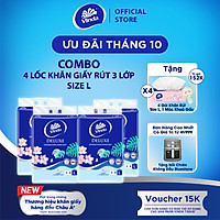 [MUA 1 THÙNG KHĂN RÚT SIZE L TẶNG 1 LỐC L + 1 LỐC S + 1 ẤM TRÀ + 1 TÚI VINDA] Khăn giấy rút cao cấp Vinda Deluxe 3 lớp 110 tờ size L (4 Gói)