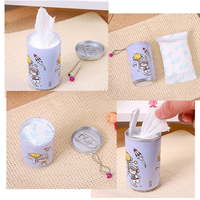 ☘️THÔNG TIN SẢN PHẨM : 1. Kích thước dạng lon có nắp khui : 8.5cm x 5cm. 2. Trọng lượng: 83g 3. Khăn giấy để trong bọc kín có 30 chiếc. 4. Chất liệu: Vải không dệt cao cấp, mềm mại, an toàn. 5. Sản phẩm có nhiều mẫu, Shop xin phép giao ngẫu nhiên.