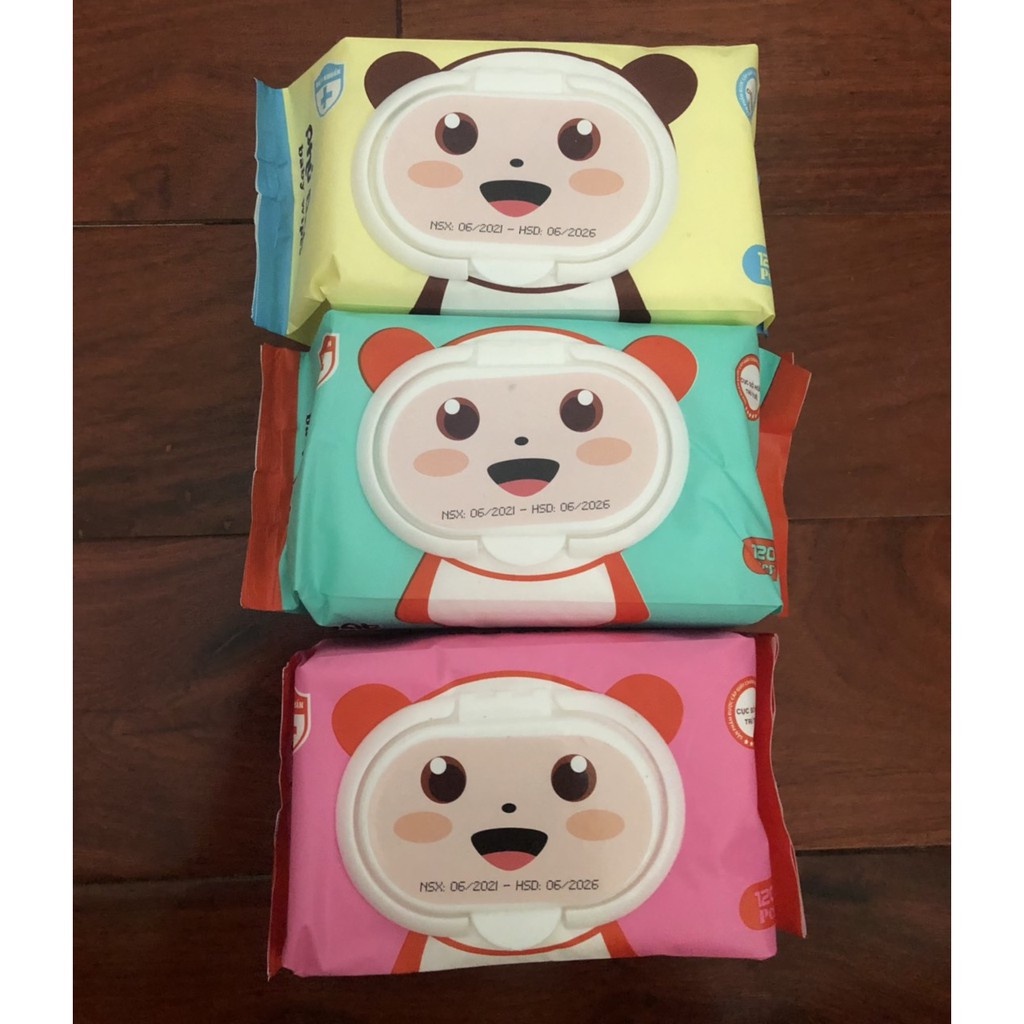 Khăn giấy ướt Phú Đạt hình gấu không mùi, gói 120 tờ date mới
