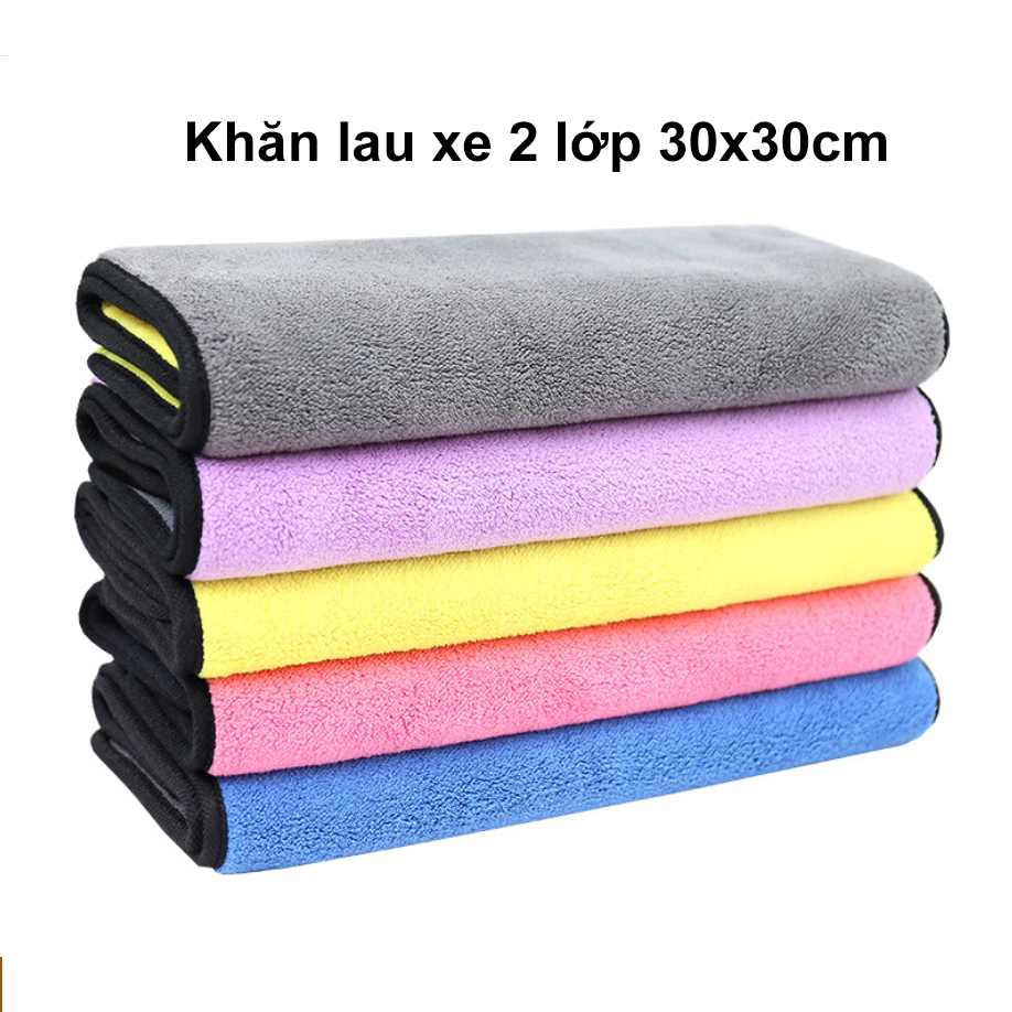 Khăn Lau Ô Tô 2 lớp Siêu Thấm 30cm x 30cm làm từ sợi vải microfiber siêu mềm mịn không bị xù, rụng lông. Khăn chuyên dụng dùng để lau cabin, nội thất, kính hoặc bề mặt sơn của xe ô tô, mô tô, nhà bếp, tủ kệ, úp lau sạch bụi bẩn một cách tối đa mà không gây xước, không làm mất độ bóng của xe, trong khi lấy khăn thường lau khô như vậy thì chắc chắn xe của bạn sẽ để lại những vết xước nhỏ mờ mờ.