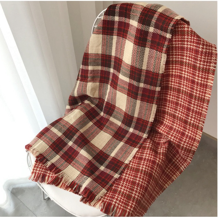 Giới thiệu Khăn len quàng cổ kẻ 2 mặt màu đỏ, xanh, đen, xanh rêu, khăn đôi