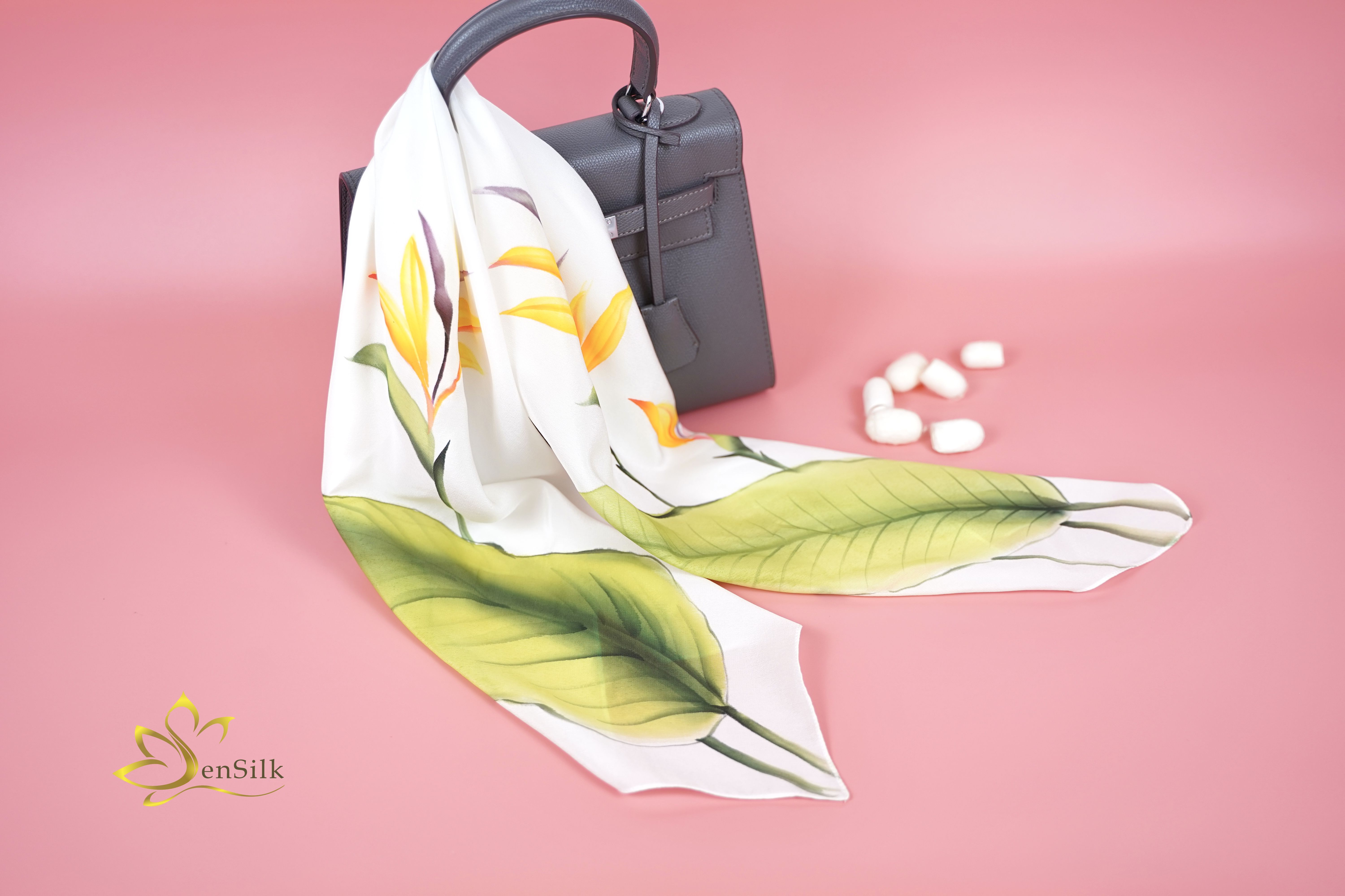 Khăn Lụa Đẹp Vẽ Hoa Thiên Điểu SenSilk – đại diện cho bông hoa mang trong mình những thông điệp đẹp đẽ. Thiên Điểu có hình dáng bông hoa hoang dại tựa như hình một chú chim rực rỡ vươn mình lên chuẩn bị những sải cánh bay bay vào không gian. Là tư thế của sự tự do, phóng khoáng. Hướng đến một hành trình lạc quan, đầy mong đợi.