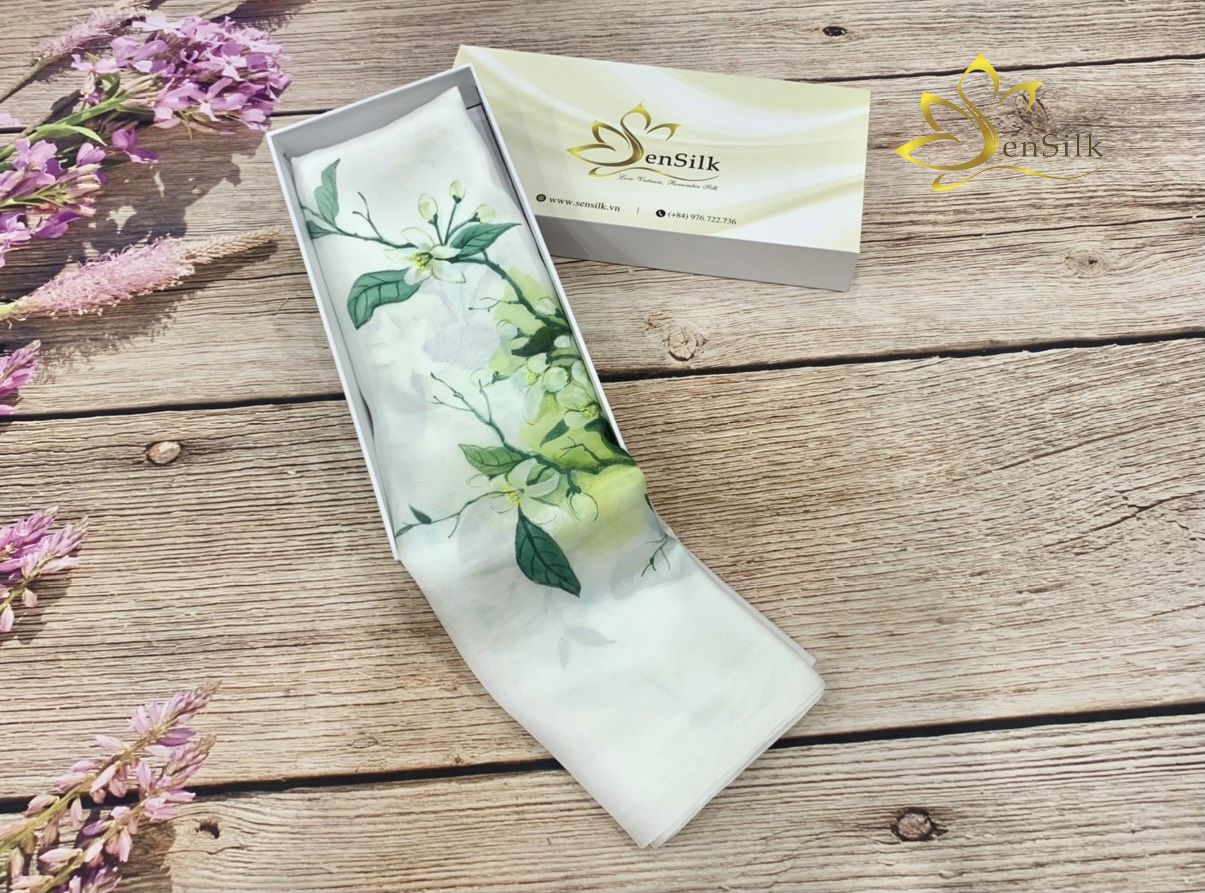 Đặc biệt, khăn lụa vuông vẽ tay SenSilk Luxury là dòng sản phẩm từ lụa 100% tơ tằm Bảo Lộc – nơi được mệnh danh “Thủ phủ dâu tằm tơ Việt Nam” từ lâu đã nổi tiếng với nghề trồng dâu, nuôi tằm và dệt lụa. Gam màu trang nhã dễ kết hợp với mọi trang phục chính là lựa chọn dành cho quý cô yêu phong cách tối giản và thanh lịch.