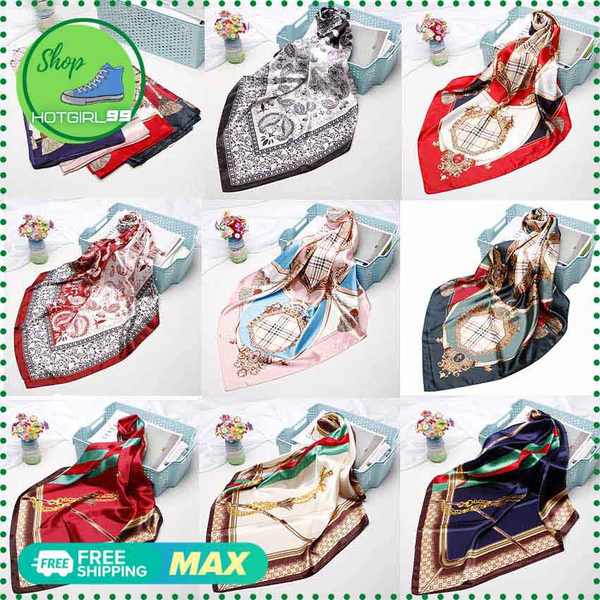 Giới thiệu Khăn lụa satin quàng cổ, 90x90 họa tiết thanh lịch , khăn đội đầu đa năng / hotgirl99