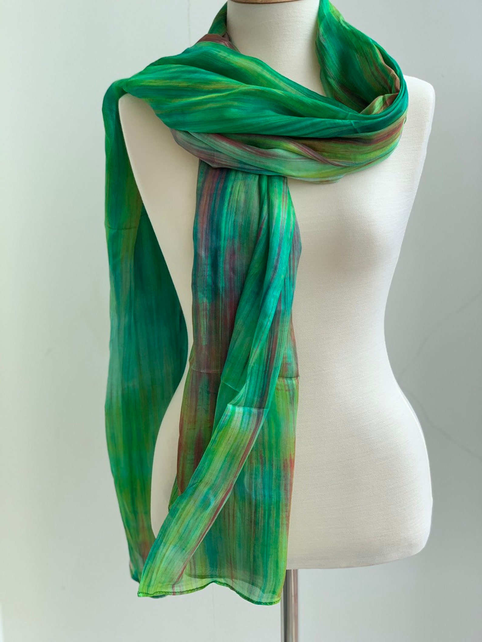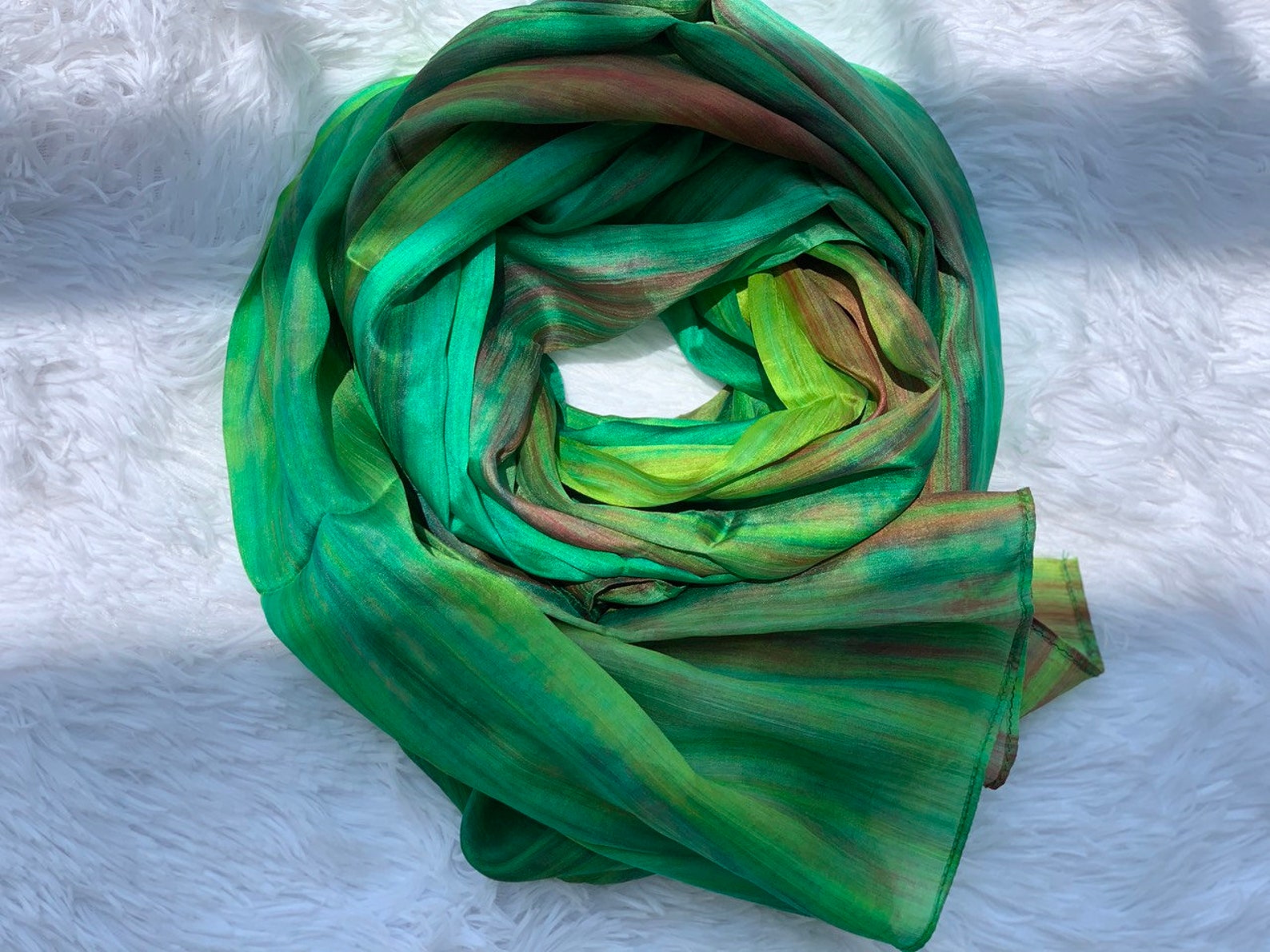NHẸ NHÀNG – THANH LỊCHThương hiệu: Kích thước: 180cm x 90cmChất liệu: 100% sợi tơ tằm tự nhiênDệt thủ công và phơi căng khungNhuộm màu bằng chất liệu tự nhiên (lá cây, rễ cây, vỏ cây như: củ nâu,...
