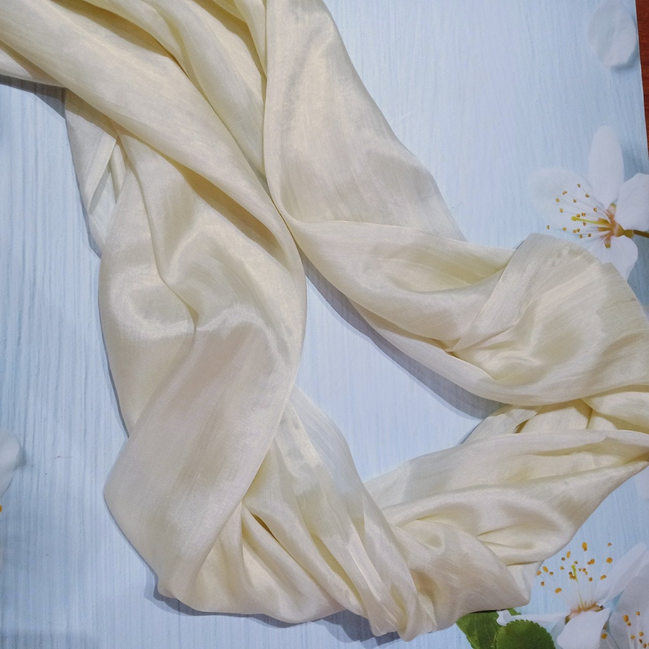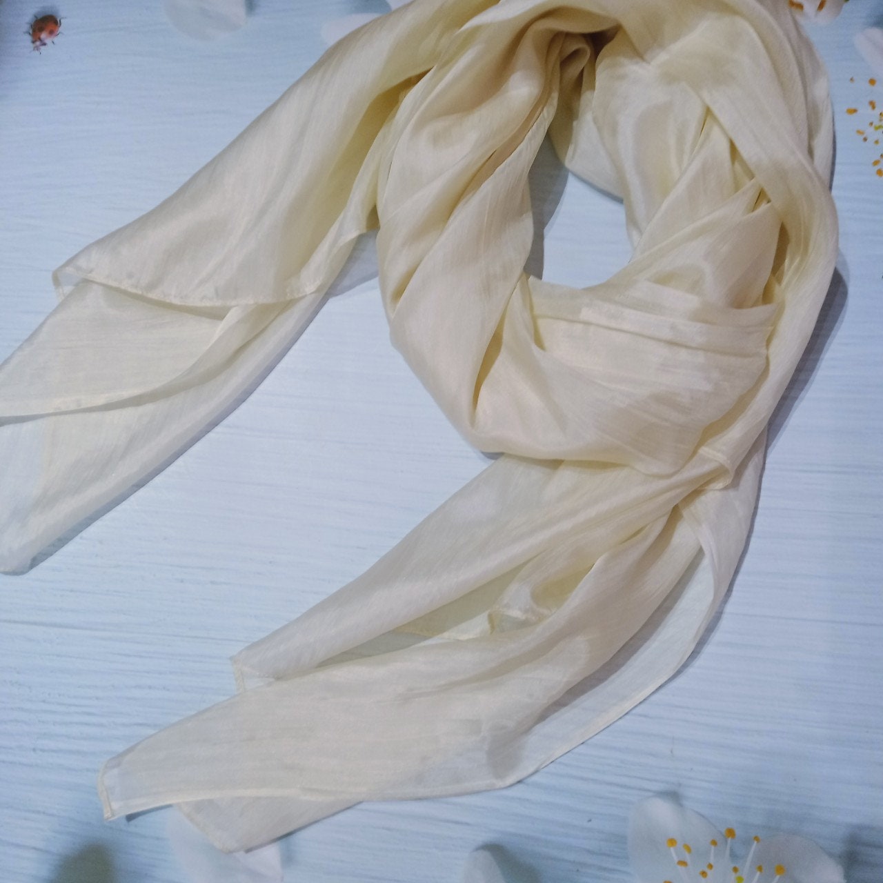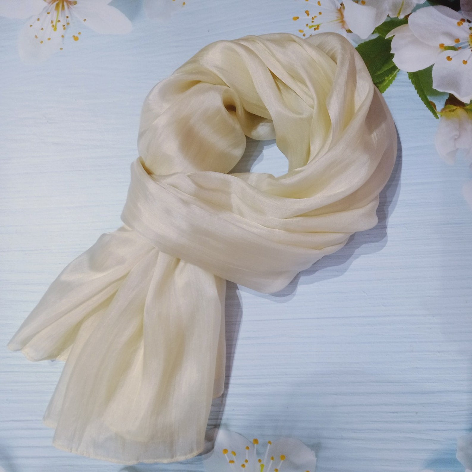 Khăn Lụa Tơ Tằm quàng cổ màu trắng kem#thanh lịch#nhẹ nhàng#thoáng mát, dùng được cả 4 mùa, kích thước 180cm*90cm